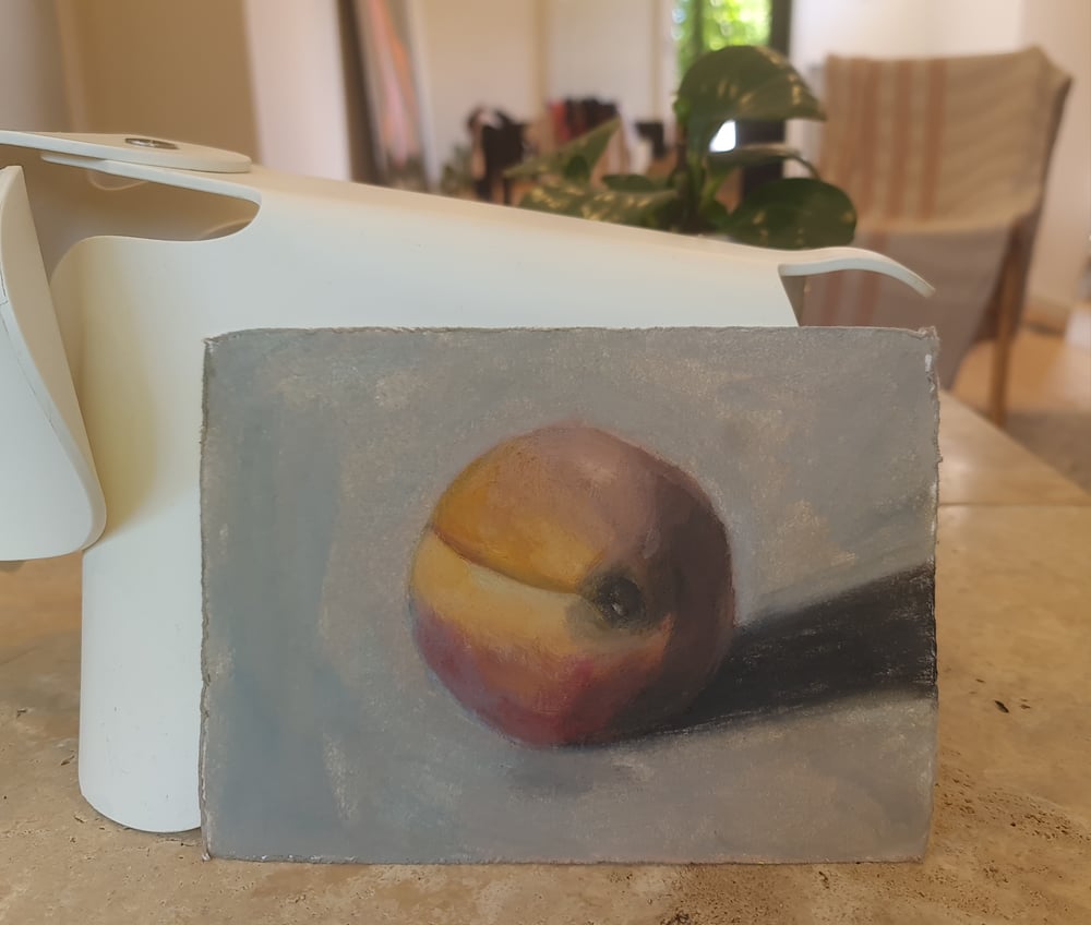Oil on Peterkin Indie handmade paper. Approx 15.5cm x 21cm, unframed. Framing options available.