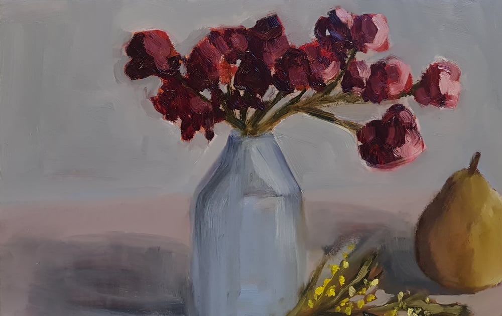 Oil on board. 30cm x 40cm, framed in Victorian Ash. Available as part of the Mini Series Art Prize @ The Corner Store Gallery.