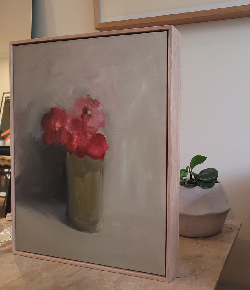 Oil on linen board. 53cm x 43cm, framed in natural oak. Finalist piece in The Doyles Art Award 2024. Free shipping within Australia.