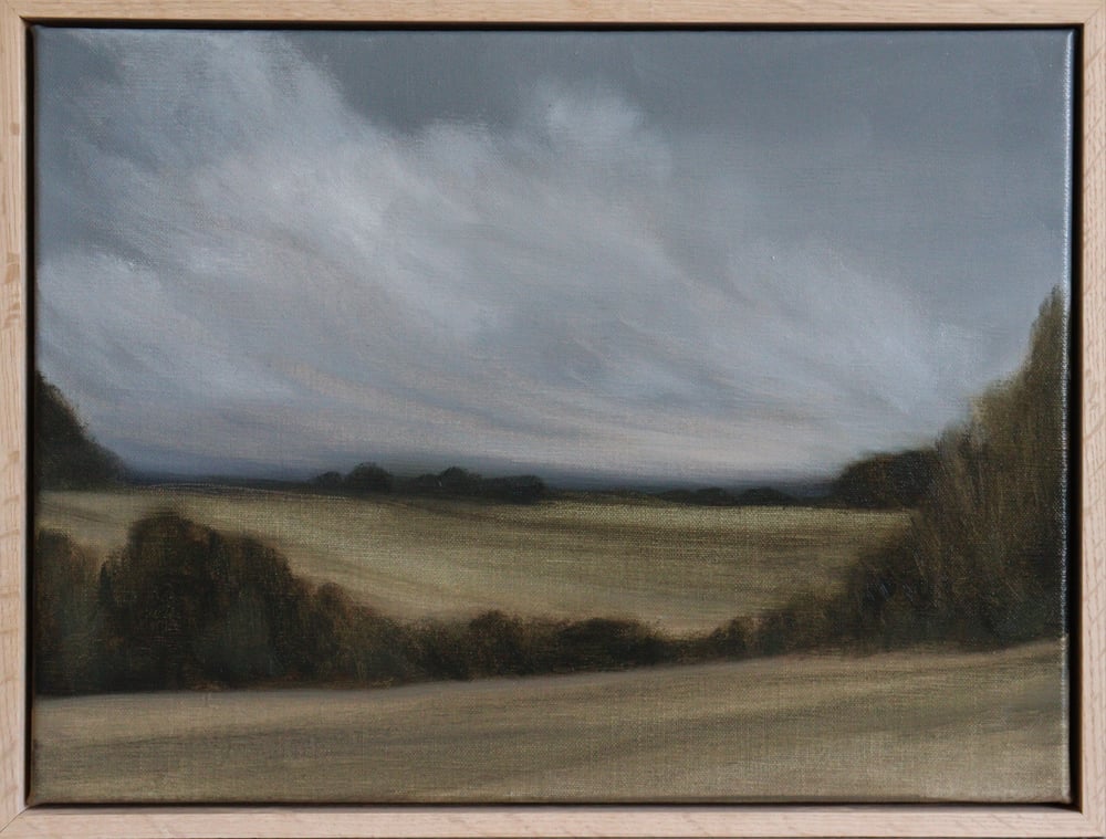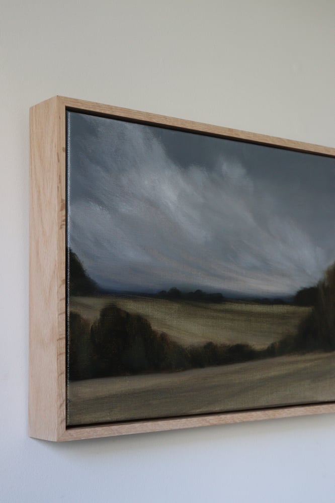 Oil on thick-edge linen. 33cm x 43cm, framed in natural oak.