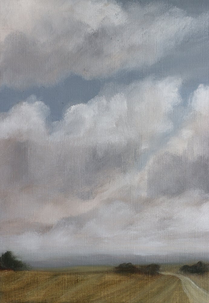 Oil on thick-edge linen. 43cm x 53cm, framed in natural oak.