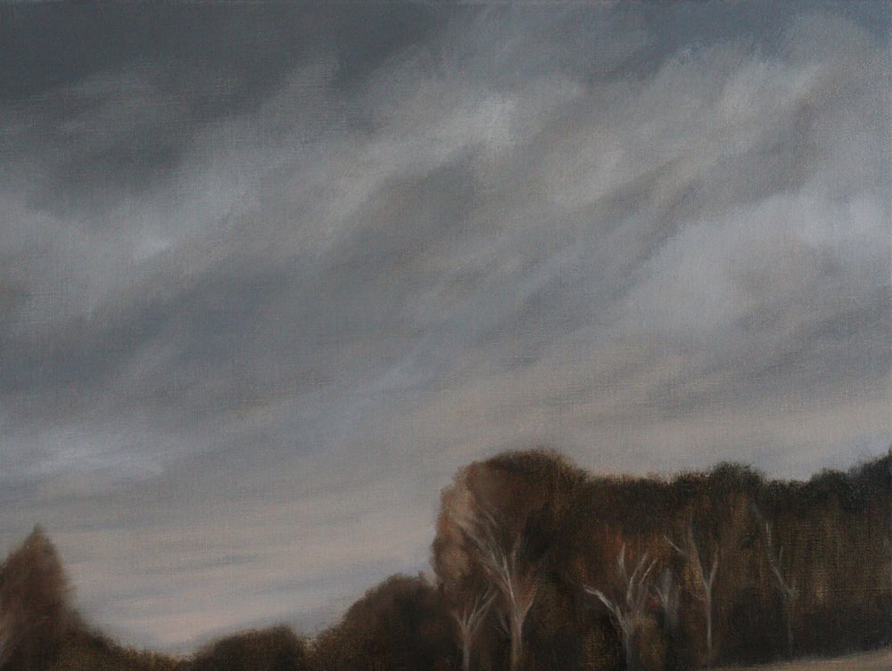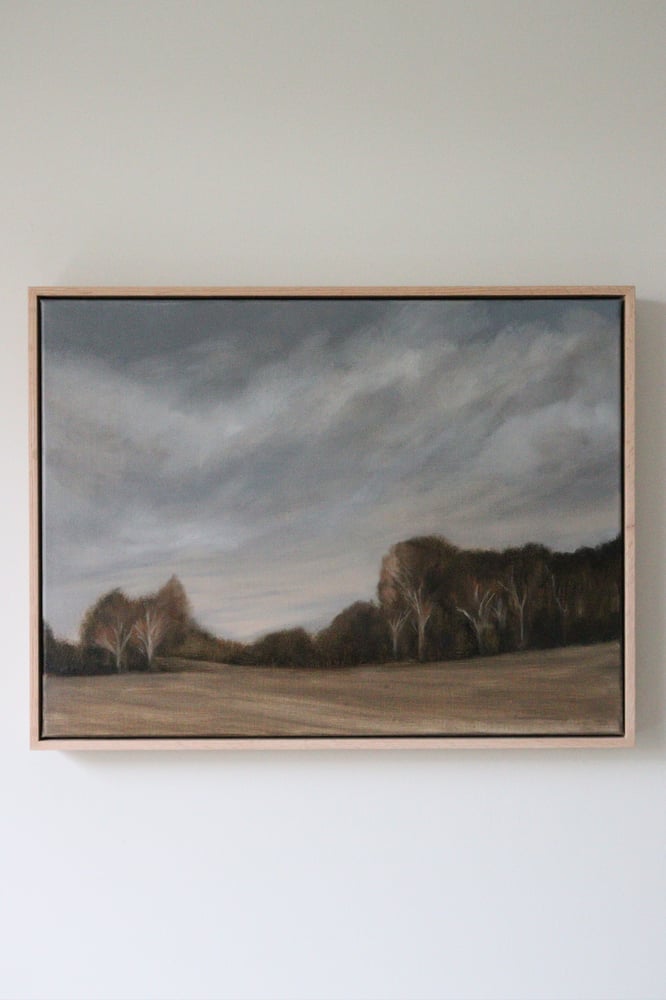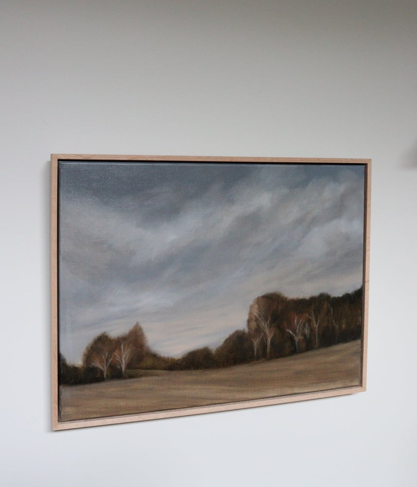 Oil on thick-edge linen. 48cm x 63.5cm, framed in natural oak.