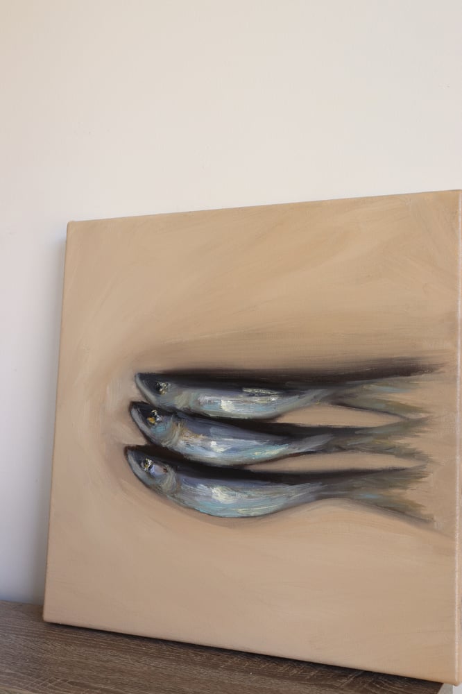 Oil on thick-edge canvas. 43cm x 43cm, framed in natural oak. Available soon from Cleo Collects.