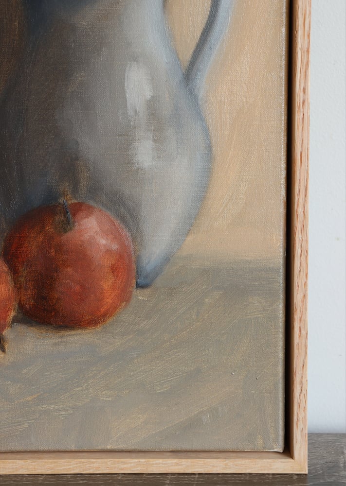 Oil on thick-edge linen. 43cm x 33cm, framed in natural oak. Available in the January Artbid auction.