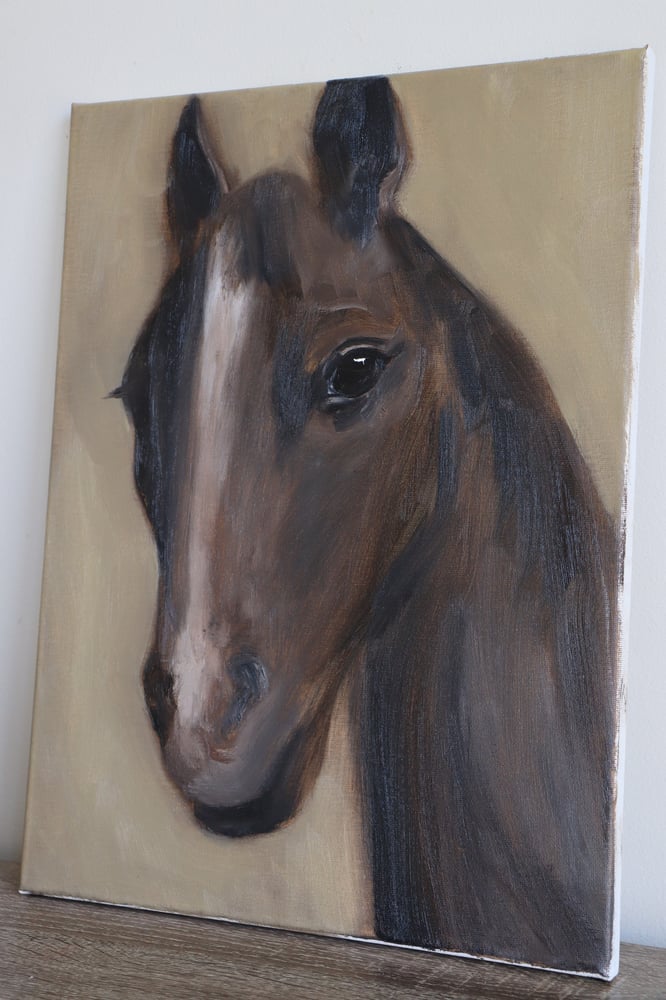 Oil on thin-edge canvas. 43cm x 33cm, framed in natural oak. *sides have been painted