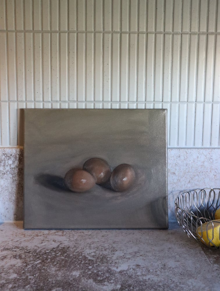 Oil on thin-edge cotton canvas. 25.5cm x 31cm, unframed. Framing options available. Note that professional framing results in a thick-edge profile of approximately 5cm.